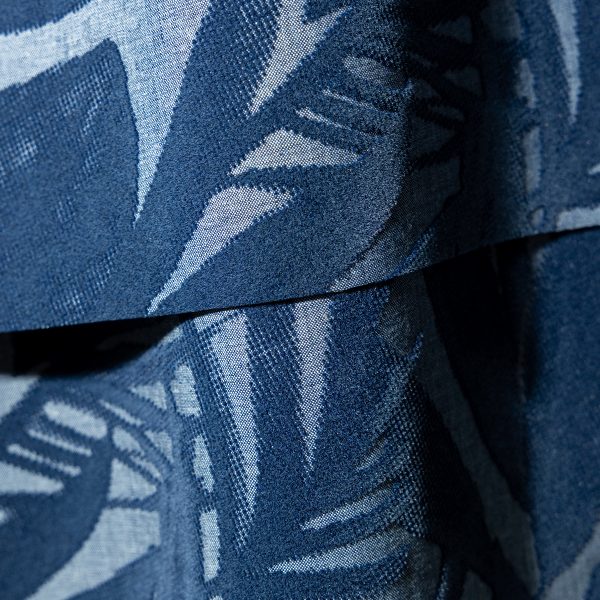 I Cenotes della penisola dello Yucatán ispirano una reinterpretazione del denim Albiate 1830. Tessuti in misto lino, cotone e mussole leggere si arricchiscono di lavorazioni che spaziano dal denim gessato al floccato, dal ricamato all’agugliato, fino a seersucker su disegnature check. Jacquard e fil coupé aggiungono texture e profondità, mentre il tinto filo e le stampe floreali catturano tutte le sfumature del blu, dall’azzurro più luminoso alle tonalità più intense.