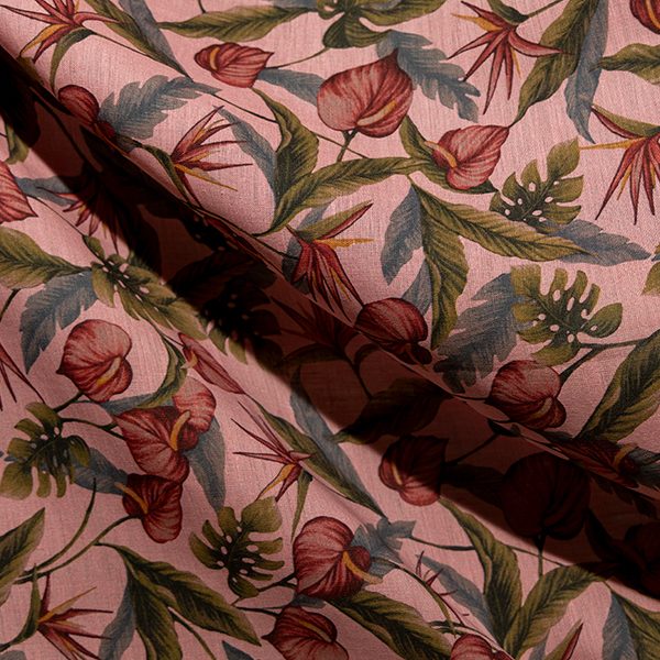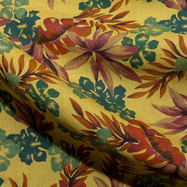 Ispirato all’architettura vibrante di Città del Messico, tra strade, mercati e grattacieli incorniciati dalle palme, questo tema traduce la vita urbana in tessuti di lino-seta e lino-cotone, con lavorazioni jacquard e armature strutturate. Le superfici stampate evocano foglie, palme e fiori, fondendo la modernità urbana con la natura che la attraversa.